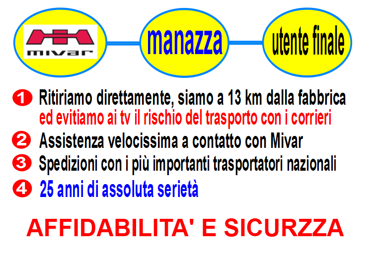 I tv consegnati direttamente godono della doppia assistenza Mivar e Manazza F.lli direttamente con il notro laboratorio.